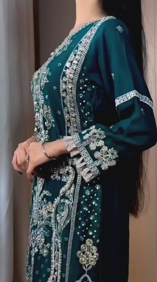 DARK GREEN EMBROIDERED 3PC SUIT